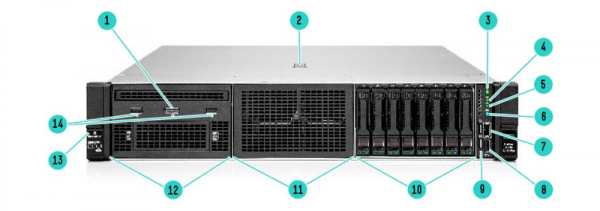 نمای عقب و پشت سرور اچ پی DL380 G10 Plus را نیز در تصویر زیر مشاهده می‌کنید که با شماره‌گذاری مختلف قسمت‌های مختلف آن را معرفی کرده‌ایم: